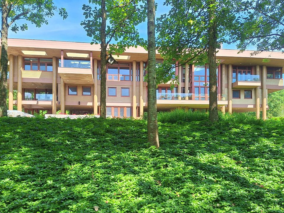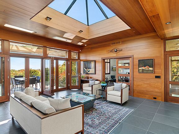 Discover the pinnacle of refined living in this bespoke estate, a masterful sanctuary for those who demand precision, privacy, and unparalleled elegance. Perched on 10 acres of tranquil space surrounded by 55 acres of reserve, the property provides an exclusive retreat where the outside world fades into oblivion. Drawing inspiration from Frank Lloyd Wright's organic architecture, the home seamlessly blends with its surroundings through fluid lines, natural materials, and expansive horizontal planes that draw in sunlight and breathtaking vistas. From above the treetops, panoramic ocean views unfold, while sunrises bathe your private oasis in golden light-accompanied by gentle breezes, endless horizons, and summer gardens alive with hummingbirds and butterflies dancing among blooming echinacea. Effortless luxury abounds: a 4-person elevator glides you between floors, Lutron shades offer instant control over light and seclusion in every bedroom, and radiant heated floors warm all bathrooms. The cutting-edge Control4 smart home system intuitively manages your environment. Embrace seamless indoor-outdoor flow for elevated entertaining. Savor al fresco dining on the expansive top deck with sweeping panoramas, or cozy up on the screened porch by one of five wood-burning fireplaces across three chimneys. Challenge friends to ping-pong on the generous front and side decks, or fire up the professional Wolf grill and custom Grillworks setup for gourmet outdoor feasts. Refresh in the outdoor shower post-swim in the infinity pool, complete with dual 25-yard lanes, an oversized hot tub, and a mesmerizing waterfall backdrop. Visionary landscaping by Chris Laguardia transforms every exterior moment-whether grilling, lounging poolside, or wandering vibrant gardens-into an intimate, extraordinary escape. Inside, five luxurious bedrooms (with an option to convert an amenity space into a sixth) are supported by blazing-fast internet (468 Mbps) for seamless connectivity. Adorned with curated art, including works by Ryan McGinness, the estate boasts a state-of-the-art gym and those inviting fireplaces for ultimate relaxation. This is more than a home-it's a harmonious fusion of Wright's modernist ethos and nature's serenity, delivering restorative opulence after every round on the course. Your legacy of luxury awaits. Also available at $200k for any two weeks May 22-June 30 '26.