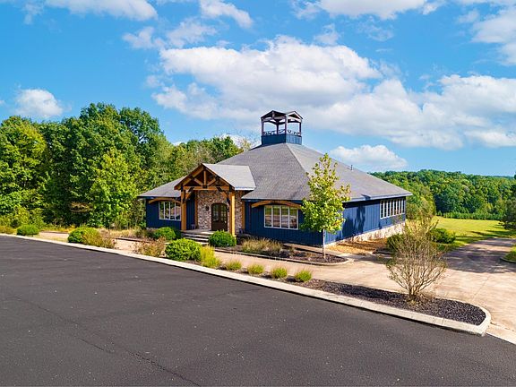 A winding drive leads to the impressive centerpiece of the property, a 6,000+/- square-foot clubhouse majestically positioned, featuring floor-to-ceiling windows flooding the interior with natural light, plus showcasing million-dollar panoramic views of the surrounding landscape and nearby Kentucky Lake. The warm wood flooring, two well-appointed bathrooms, and open layout make this an ideal setting for a private residence, wedding and event venue, or weekend retreat.