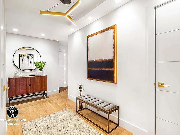 Architectural details abound. The floors are made of wide plank premium grade French oak. Interior doors feature a square profile with kerf cut reveals and solid satin brass hardware. There is gallery lighting throughout, with trimless LED recessed fixtures, perfect for showcasing art. The apartment features oversized windows with southern views onto Park Avenue from the living room. There are double coat closets in the entry, a separate linen closet, and a dedicated laundry closet with a stackable self-venting Bosch washer and dryer.