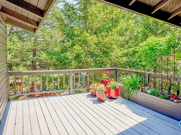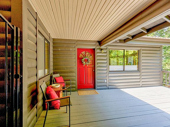 Charming artist retreat sits in a desirable forested setting above SOU campus on a level street at the City's edge. Multiple decks overlook the TID canal for an added opportunity to enjoy the outdoors. The home and 2-car garage have log siding and a tiled roof, and are well positioned for privacy. The primary suite and second bedroom/bath are found on the main living level, along with laundry, kitchen and great room. The lower level with it's own outside entrance contains another bedroom, bath, bonus/flex room and large storage room that offers many possibilities. Vaulted wood ceiling in great room and well-placed windows provide for good natural light. The updated galley kitchen with solid surface counters has been opened to the great room and embraces the overall contemporary flavor of the property. Central heating/cooling on main level, baseboard on lower level. No CC&Rs, no HOA. Nature is at your front door with TID trail nearby. Whole house water filtration system.