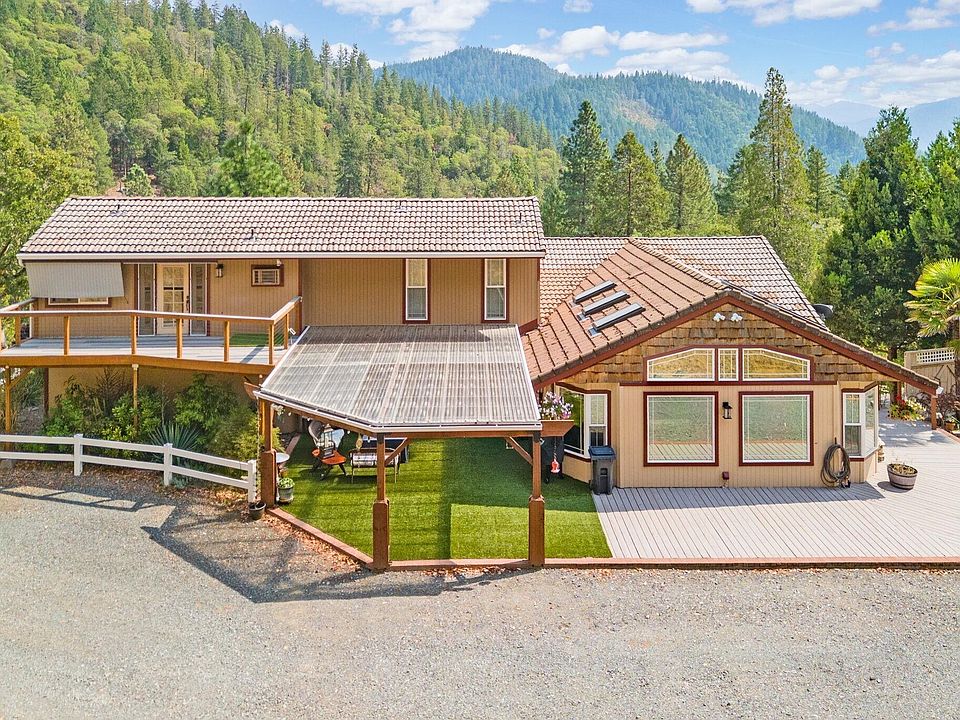 Unique beauty, design & stunning views ~ it's not too much to ask. This spacious, fully remodeled home features nat. wood & stone details to mood lighting, observations decks and more! The kitchen boosts beautiful wood custom cabinets, granite counters and higher end appliances, like a Jenn-air cooktop & Stainless Kitchen-aid Fridge providing an enjoyable gathering place for cooks and company alike. You'll also enjoy peace of mind, knowing that most all big ticket items have been replaced, including HVAC system, gar. door & free-standing propane living room stove, these along w/ a durable cement tile roof~ all you need to do is sit back and relax! And there are plenty of places for that, from any 1 of the 3 decks around the home, to the hot tub or huge 2nd floor primary suite, cozy living rm, to family room bathed in nat. light and stone accents. The choice is yours. All this only 3 mi. from town. So shopping, dining and healthcare are only moments away. Take a tour today!
