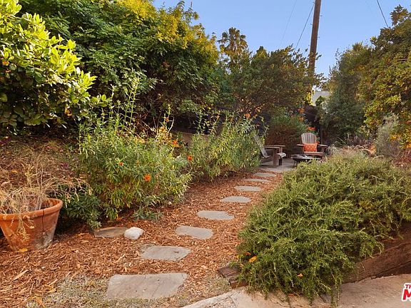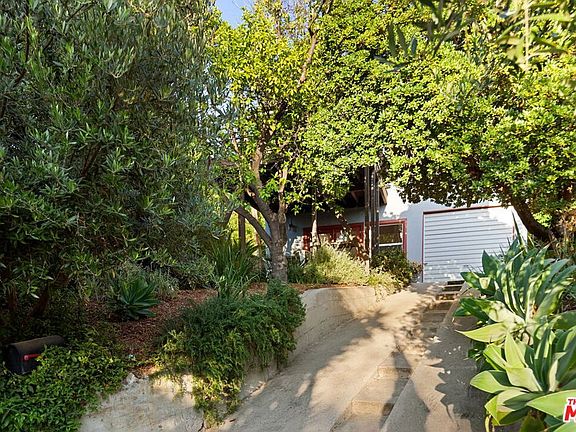 Hidden gem in beloved Sunset Junction! Set on an inconspicuous street, just off Sanborn, you'll find this charismatic and delightful 2 story home with loads of privacy. The front garden, filled with CA natives, conceals a patio and the main entrance to the home. A set of French doors open to reveal a vast living room space with tall ceilings, stone flooring and cantilevered staircase. A bathroom with a walk-in shower and laundry complete this level. The upper floor is bright and airy with 2 large skylights, dining and a well-kept kitchen with all the essentials. Four single lite doors open to unveil the upper deck, an ideal outdoor lounging spot with retractable awning and treetop views. The upper bathroom with green and cream tiles sits between two private bedrooms. The attached garage with additional storage could easily double as a home office, with parking available in the driveway. Located just a few blocks from all that's happening in Sunset Junction, this one could be your own private slice of Silver Lake!