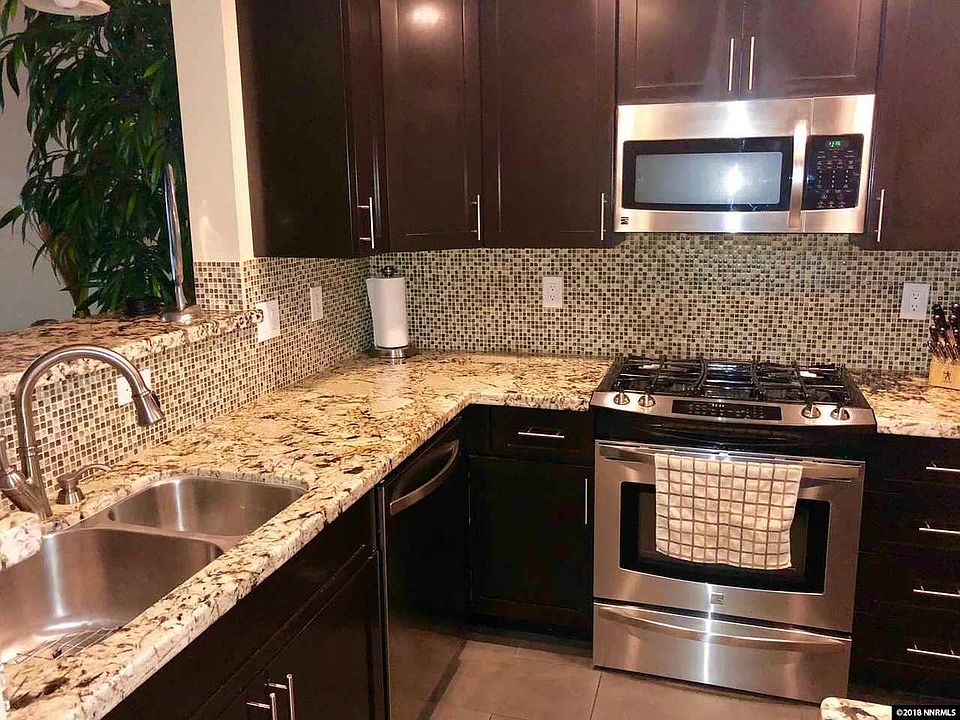 Tanamera Resort living at it's finest! This fully furnished, immaculate 1 bedroom, 1 bath condo has been extensively remodeled with an upgraded kitchen, bathroom, and flooring. The kitchen offers granite counters, upgraded cabinets and appliances, mosaic tile back splash, and a breakfast bar. It opens into the living room that has high ceilings, a fireplace and a ceiling fan. A separate dining area rounds out the living space. Just off the living room, you'll find your ground level covered patio.