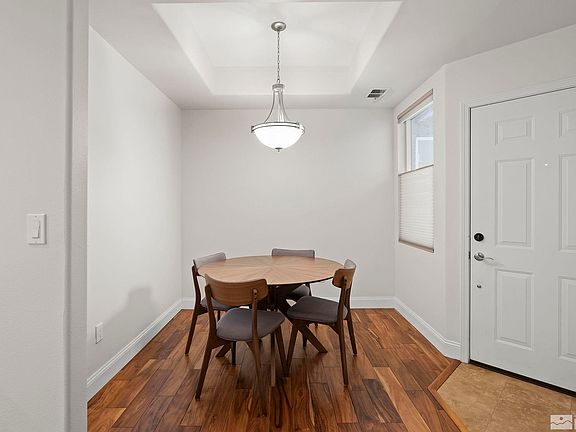 Park-like setting in the heart of South Reno is truly a dream location. Nestled within the gated Tanamera resort, offering a serene atmosphere and beautiful landscaping. The ideal floorplan features the convenience of an attached ground-floor garage that backs to a greenbelt, providing both comfort and a connection to nature. Inside, the home boasts impressive upgrades, including engineered wood flooring, a modern bathroom with a tile surround shower and upgraded vanity and cabinets, see ext. remarks, and an updated kitchen with stainless steel appliances. The spacious master bedroom comes with a walk-in closet and direct access to a tranquil covered patio, which overlooks a peaceful water feature—perfect for unwinding after a long day. Additional features include updated windows, a cozy great room with a fireplace, and easy access to the resort-style pool and clubhouse. With ample parking available and essential appliances such as a refrigerator, washer, and dryer included, this home is move-in ready and offers the perfect blend of style, convenience, and a beautiful natural setting. Tanamera is a gated resort community with a lovely lagoon style pool, two spas and state of the art gym with two racquetball courts, saunas, and Pilates equipment. Impeccable grounds with easy access to wonderful walking/bikes paths, 15,000 square foot clubhouse, lounge/movie room, business center and convenience of daily trash pickup, water and sewer included in HOA. Close to grocery shopping restaurants and hospitals. Your home will feel like a permanent vacation! Please see private remarks