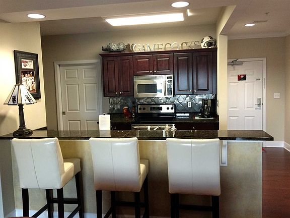 Spectacular game day condo! Premiere fourth floor unit with an amazing stadium side balcony view. Gleaming hardwood floors, granite counter tops, stainless steel appliances, beautiful backsplash in kitchen and wallpaper design in bathrooms! This unit also has a wet bar, interior brick wall and a double balcony! You do not want to miss out on this unit!