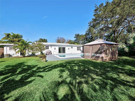 Fully embracing the Mid-Century Modern style, this stunning residence has been re-engineered and finished to appeal to the current palette. Located in the ember-hot Hildabrad Park enclave within striking distance of Downtown Stuart and waterfront estates, one would be challenged to find a more authentic example of the marriage between clean lines and luxury finishes. Situated on a precious .34 acre corner lot, this home exudes character and style. The sleek, contemporary shape of the home gives some clue of the terrazzo floors, sleek woodwork, and recently updated kitchen (quartz and stainless steel finishes) and tasteful baths inside. The home delivers openness but simultaneously carves out separate living and dining areas. Master and guest room are split from the third bedroom. Outside, a rarity in the Downtown area - a fully fenced yard with full-sized pool, an oasis escape from the rigors of the day. Visit today before the this modern masterwork is consumed tomorrow.