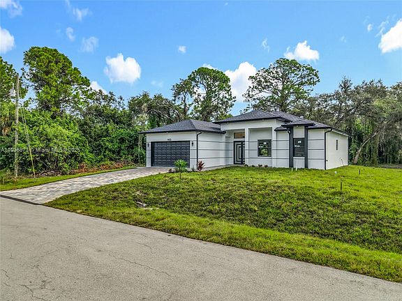 Brand new construction 2025 on a HALF-ACRE LOT in Lehigh Acres. This stunning home features 4 bedrooms, 2 bathrooms and a 2-car garage. Designed with exceptional attention to detail, has soaring 10-foot ceiling, abundant natural lighting through the house, impact windows, an open floor plan and porcelain flooring throughout. The modern kitchen is equipped with granite countertops and stainless steel appliances. The primary suite includes his and hers closets, dual sinks and a nice size shower. Conveniently located near parks, schools and shopping centers. Move-in ready. Schedule your showing today!
