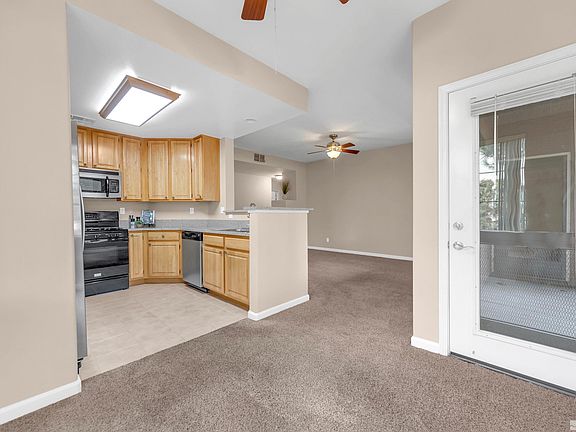 Well loved, immaculate, freshly painted, upgraded shower, one bedroom, single story, corner unit Tanamera condo! Nice touches include granite counters in the kitchen and a warm and cozy fireplace in the living room. Spacious primary suite with two closets! Enjoy the morning sun and the dual entry to spacious patio., Home is just a block to the pool and recreation center and has additional nearby parking spaces. Close to shopping, restaurants and Reno Tahoe International Airport!! HOA includes water, sewer and garbage. Professionally cleaned - move-in ready! Some of the photos are virtually staged.