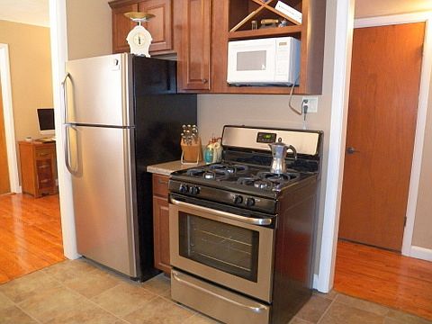 Great 3 bedroom home with 1 car garage and refrigerated air!This home features an upgraded kitchen with stainless steel appliaces and a remodeled bathroom with all lovely fixtures and a large, fenced backyard with concrete patio. 1/3 of the garage has great storage area and double driveway for additional parking or the RV. Also has security system. Within walking distance to schools.