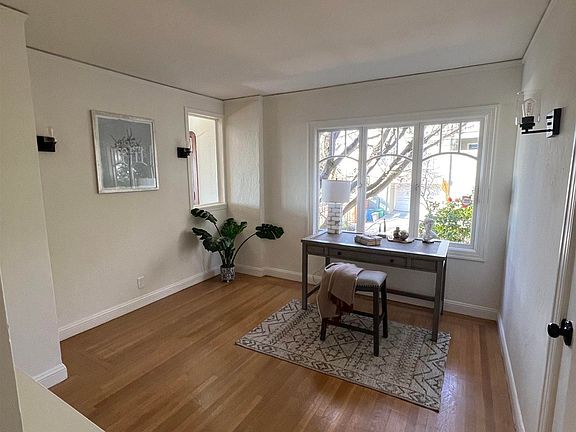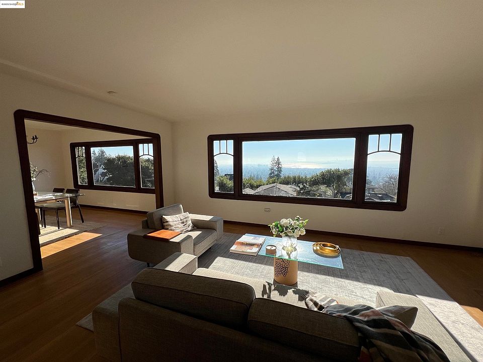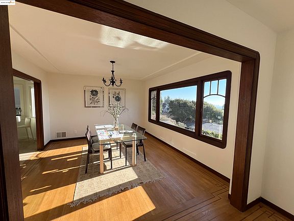 Spacious and light-filled home in the lower Berkeley Hills with five full bedrooms and three bathrooms, as well as two bonus rooms or offices and lots of storage. An eat-in kitchen opens to a large dining room, which shares bay views with the living room. There are two off-street parking spaces, along with washer and dryer hookups inside the house.