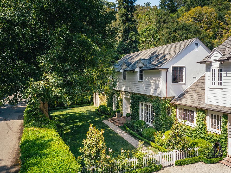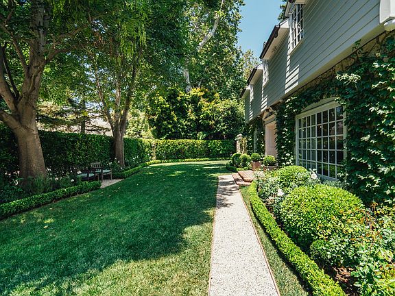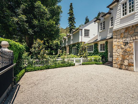 Elegant, gated, traditional home on one of the best streets in Bel Air. With 5,000 SQ FT of newly updated living and outdoor space, this welcoming property is stylish and easily accommodates the needs of modern life. Downstairs, a grand foyer leads to a graceful living room with fireplace, dining room, a sun-drenched library, and a large, private guest suite. Upstairs are 4 bedrooms and baths, including the spacious master suite with fireplace, dual baths and closets, plus a large, bright office (could be a 6th bedroom). The large eat-in country kitchen opens to the back patio and connects to the pantry/mudroom, a playroom/gym off the garage, and a second staircase. The outdoor spaces are truly magical, from the grassy front garden, pool, spa, outdoor shower, brick patios for outdoor entertaining, plus a secret garden at the top of the hill with views of the surrounding canyon. Ideally located on lower Stone Canyon Rd, only half a block from the Hotel Bel-Air.