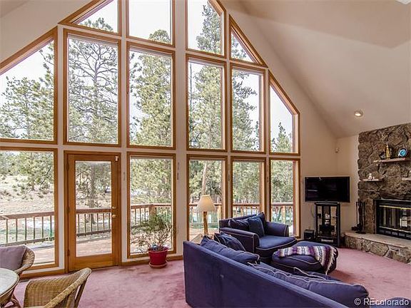 Exceptional Opportunity to own a Fabulous 3-level Mtn home on 4+ acres. Serene natural beauty in the pines, with peak-a boo views of snowcapped Mtn, offers a lifestyle dreamt about. Deer Creek Valley Ranchos, known as one of the ideal subdivisions east of Bailey, just 30 minutes from C-470. Home features floor to ceiling window views from every room. Spacious, 3rd level Master suite & bath, plus extra loft area, offers a perfect get away. Newer appliances, main level vaulted great room floor plan, with moss rock fireplace, walk out deck w/ gas outlet provides year round grilling. Separate entrance to ground level family room features 2nd rock fireplace, perfect for game room or guest suite and private bath. Exercise sunroom addition on south side open to lower deck & hot tub. Garden at 8800 ft. Greenhouse & hot tub included. Attached 2-car garage on level acreage, perfect for additional workshop bldg.