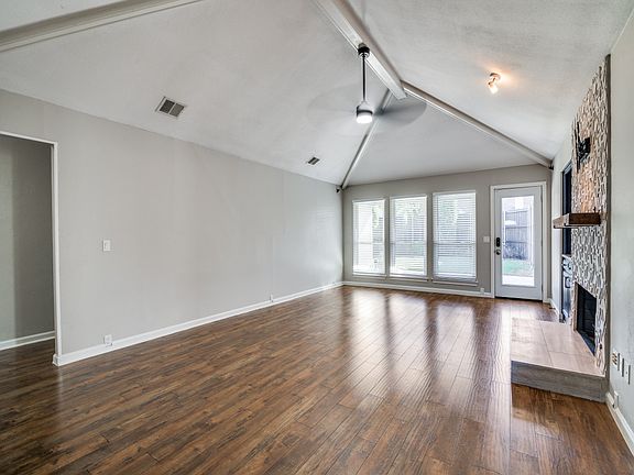 Pristine condition, immaculately kept, recently updated, beautifully landscaped, one story home on a corner lot in Allen ISD. Fresh, soft contemporary touches throughout- all updated fans, light fixtures and faucets. Kitchen includes fridge and has SS appliances and hardware, granite counters, white cabinets, tiled floors and back splash. Large central family room with vaulted ceilings and beautiful wood burning fireplace. Hardwood flooring thru entry, dining, family room and hallway. New carpet in bedrooms. Nice sized primary bedroom with fully updated ensuite bath- soaking tub, marble counters, dual sinks, frameless glass shower, 2 walk in closets. Second bath is also recently updated with subway tiled shower tub, solid surface counters and contemporary vanity mirror. Out back: 8 foot board on board privacy fence surrounds low maintenance, professionally landscaped grassy back yard with covered and open patio areas. Enjoy beautiful days outside in total privacy! Very efficient one story home. All new electrical and plumbing, new toilets. This place is absolutely fantastic and truly a standout in quality. 12 month minimum lease. Tenant pays all utilities and yard maintenance. Pets case by case.