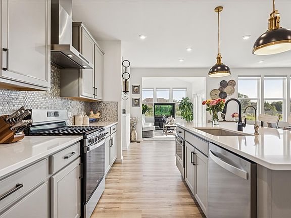 Abundant natural lightLarge island with seatingSpa-like bathVersatile flex roomLg washer and dryerOpen concept layoutQuartz countertops