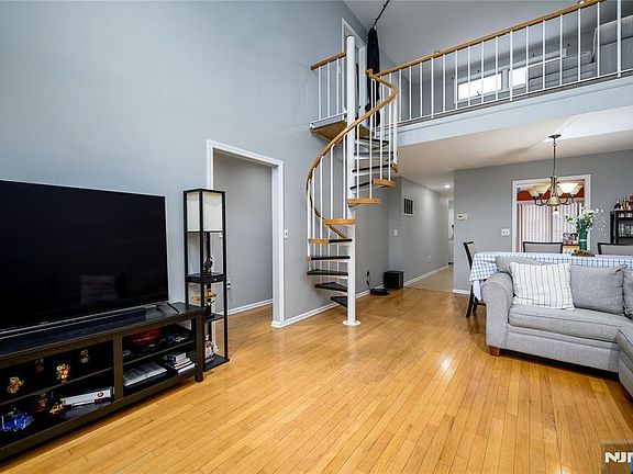 Spacious and bright 1,500 SF 3-bedroom condominium with a loft-style layout in the lovely Hamilton Crest condominium complex. High ceilings and an open living and dining area filled with natural light. The kitchen offers ample cabinetry, generous counter space, and stainless steel appliances. Sliding doors lead to a private balcony overlooking green space, providing a peaceful outdoor setting.The home includes comfortable bedrooms, well-maintained bathrooms, and a large private storage area in the basement. A spiral staircase adds architectural character while maximizing space and functionality. Located in a quiet community with convenient access to major highways and an easy commute to NYC.