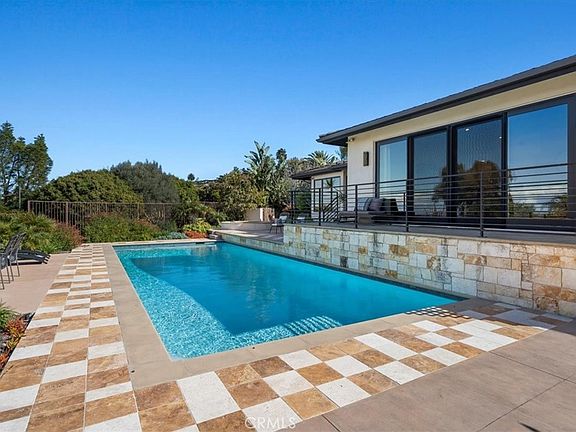 A rare offering in the heart of Palos Verdes Estates—welcome to this gated coastal estate where timeless elegance meets modern sophistication. Perched on an expansive, private 1/3 acre parcel, this residence commands breathtaking views of the Pacific Ocean, coastline, and shimmering city lights—an ever-changing canvas seen from nearly every major room. Completely rebuilt in 2018, this home was masterfully reimagined with an emphasis on clean lines, open space and refined finishes. A dramatic entrance leads to a grand living room with vaulted ceilings, sleek fireplace and walls of glass that frame the panoramic vistas. The adjoining open-concept dining area flows seamlessly into the designer kitchen, where a striking 10-foot marble island and top-tier stainless steel appliances create a true culinary showpiece. The home features four en-suite bedrooms, thoughtfully positioned for privacy and flexibility—ideal for multi-generational living or guest accommodations. Two oversized family rooms—one with a bar and fireplace, the other with mesmerizing views—offer multiple spaces to relax or entertain in effortless style. Retreat to the stunning primary suite with ocean views and a spacious walk-in closet with a built-in organization system. The primary bath has marble details and a free-standing soaking tub. Hardwood floors, custom cabinetry and curated fixtures and finishes throughout speak to the craftsmanship and quality that define every inch of this home. Outside, lush, professionally designed gardens surround the estate, offering both beauty and seclusion. A resort-style pool and spa are perfectly positioned to capture the views, creating a luxurious sanctuary for sun-soaked days and starlit evenings. This home is a lifestyle statement, offering privacy, prestige and unparalleled coastal beauty in one of Southern California’s most coveted enclaves.