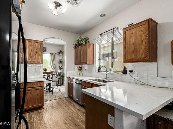 Bright and airy living area with seamless flow into the dining and kitchen spaces. Morning coffee never tasted so good under your covered patio area in your private, low-maintenance backyard. This Premium lot backs onto a wash and is only minutes from the 60 making this the perfect commuter home.