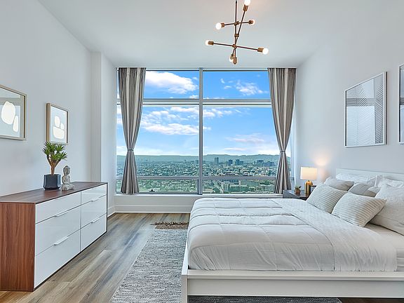 FURNISHED, WHITE GLOVE MODERN LUXURY CONDO AT THE RITZ CARLTON, You can live in the tallest and one of the most prestigious residential skyscrapers in Los Angeles. Come Be swept away on the 32nd floor of this Stylish and Chic 5 Star Condo at the very sought after Ritz-Carlton Residences LA. The epitome of luxury and success, this high end home is supreme. Recently remodeled, it is stylishly furnished nicely with a mid century modern touch. Light and Bright, highlights are the absolutely incredible views to the glimmering Pacific Ocean, stunning Mountain Range, famous Hollywood Hills, the Griffith Observatory and Hollywood Sign. This is the prime and favored view location of the building facing west. Daytime is absolutely gorgeous and the sunsets and twinkling lights at night are so superb. On the interior, your favorite features will be the custom wood beams, floor to ceiling windows, stylish gray kitchen cabinets, wide plank flooring, high ceilings and the gold and black finishes throughout. An upgrade is an added walk in closet in the bedroom as the plan originally only has 1 closet. This gorgeous building was designed by Gensler and built by AEG and is literally a dream residence for so many. Experience white glove services like a doorman, 24 hour security, housemen, valet, concierge, saltwater pool and bar and on-site Ritz Spa. This lifestyle is outstanding and delightful. Also walk to concerts, sport events, award shows and restaurants all within a short distance. A truly fantastic and exciting living experience. Treat yourself. Includes 1 valet parking. No Pets, No Smoking, Excellent Credit and References are a Must. Bed is a Queen size. Tenant pays electric and internet, cable. Requires Renters Insurance. Will consider short term term leases. AVAILABLE MID NOVEMBER 2025.