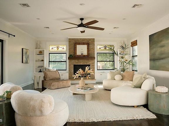 Heated saltwater poolPrivate gated driveGrand fireplaceCarved fireplacePool houseStained-glass detailsBaja shelf