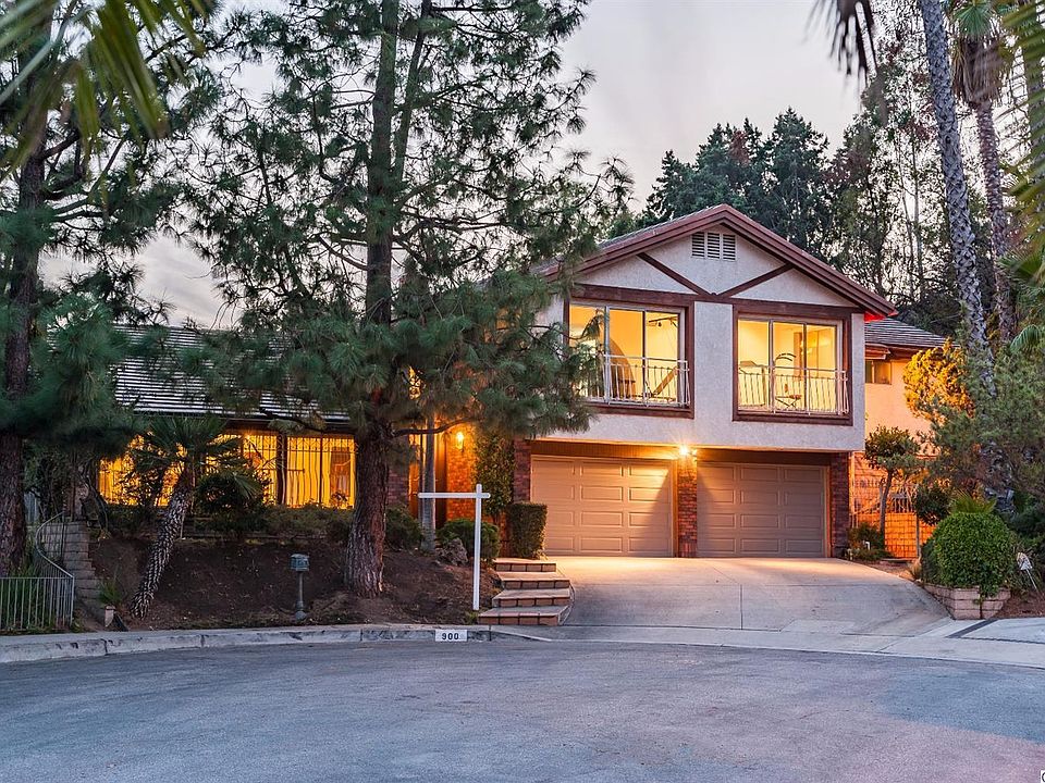 This classic traditional home is located at the end of a very quiet cul-de-sac in desirable Glenknolls Estates of Glendale providing partial City views and beautiful mountain views in a private and serene setting surrounded by nature and mature trees. This elegant two story home features grand entry into formal foyer, high ceilings, living room with marble floors and impressive granite fireplace opens to step up formal dining room with adjacent kitchen and sitting area. Light-filled open architecture allows access to all living areas and oversized rooms creating a perfect space for entertaining guests and family. There is a private master bedroom on the first floor and big family room with the brick fireplace and access to the outdoor patio. The second level features three good size bedrooms and serene master suite with his and her walk-in closets, dual vanities and view retreat. Master bathroom has Jacuzzi-tub and shower. You will truly enjoy the serenity and privacy of beautifully maintained backyard with many mature trees, sparkling pool and relaxing outdoor patio. Four car garage.