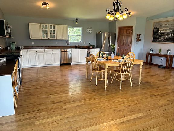 Family-Friendly Farmhouse ready to welcome you home. This move-in ready 4/2 ranch-style home overlooks 30 acres of woods and pasture, plus a pond with floating dock perfect for fishin’ and coolin’ off on hot summer days. This nearly 2600 sq ft open floor plan features wood floors, spacious laundry room, and a kitchen built for entertaining. Relax with a cool glass of lemonade under the covered porch and enjoy picture perfect sunsets all year long. The partially finished outbuilding offers an additional 960 sq ft living space perfect as a mother-in-law suite or your very own BnB for out-of-town guests. Additional features include 1300 sq ft attached garage, second garage and lean to. This property promises scenic countryside living close to great schools and local convenience.