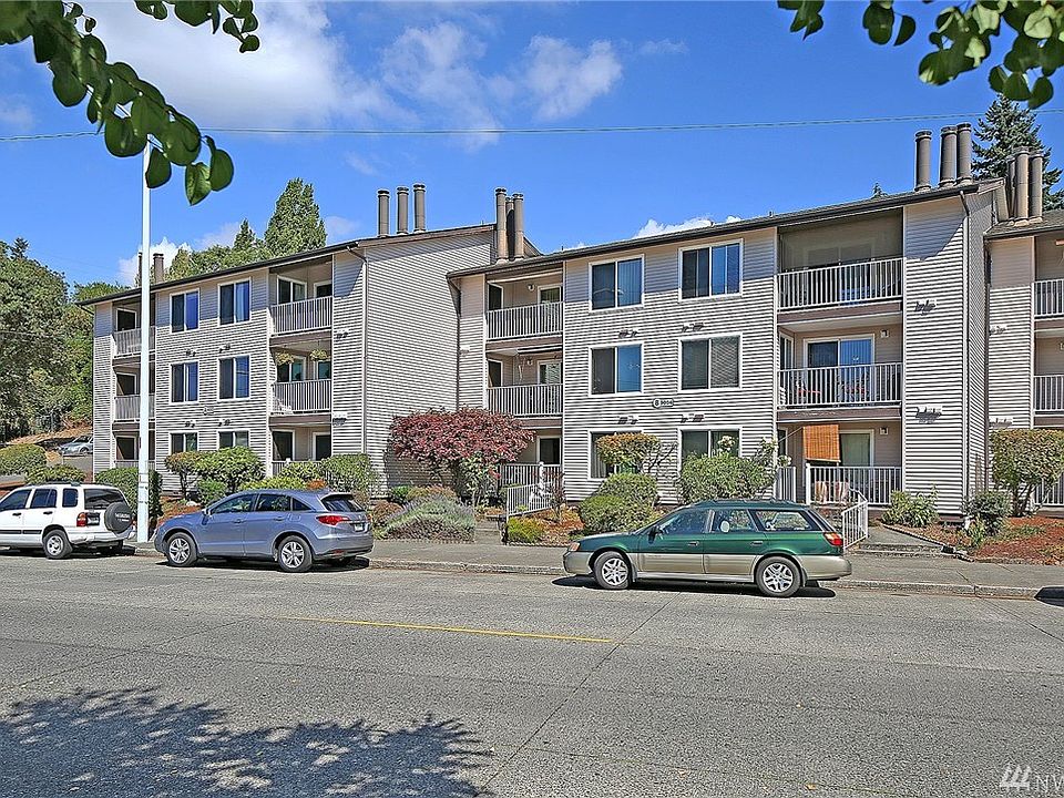 Welcome to this move-in condition Westwood Village 2 bedroom, 1.75 bath Condo! Level Entry-no more lugging groceries up the stairs! The spacious master bedroom includes private master bath, living room w/sliding door to covered deck and wood burning fireplace, separate dining room off the kitchen w/breakfast bar. Conveniently located across from Westwood Village Starbucks, QFC, restaurants, & shops. 1 covered parking space, 2 storage closets, near busline with easy access to downtown & airport.