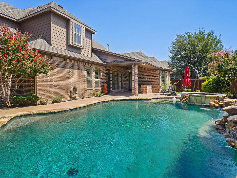WELCOME TO 9000 BELSHIRE DRIVE IN THORNBRIDGE EAST ON A CUL-DE-SAC*LET THE STRESS OF THE DAY MELT AWAY IN THE POOL AND SPA COMBINATION! THE LOVELY BACKYARD FEATURES A LARGE COVERED PATIO WITH OUTDOOR KITCHEN*NEW GRILL IN 2024*BOARD-ON-BOARD PRIVACY FENCE REPLACED IN 2024*OUTDOOR FEATURES INCLUDE UNDER-EAVE ELECTRICAL PLUGS FOR CHRISTMAS LIGHTS & EXTENDED DRIVEWAY PLUS A ONE-CAR GARAGE BAY*THE FABULOUS ENTRY WELCOMES YOU WITH A LARGE CUSTOM FRONT DOOR & GRAND STAIRCASE WITH IRON SPINDLES*THE FAMILY ROOM FEATURES A COZY STONE FIREPLACE & HEARTH*PLANTATION SHUTTERS THROUGHOUT*LOVELY MILL & TRIM WORK, INCLUDING CASED OPENINGS & PEDIMENTS OVER THE DOORS*FORMAL DINING ACCOMMODATES A LARGE TABLE,LOVELY CROWN MOLDING & BASEBOARDS*HAND SCRAPED FLOORING IN THE STUDY, FRENCH DOORS & COFFERED STAIN GRADE CEILING*MAIN KITCHEN IS EQUIPPED WITH STAINLESS APPLIANCES,BEVERAGE FRIDGE,STAINED 42 INCH CUSTOM CABINETRY,UNDER CABINET LIGHTING,WALK IN PANTRY,GRANITE COUNTERS,TILE FLOORING,COFFEE BAR,DOUBLE OVENS,GAS COOKTOP & ISLAND WITH OUTLETS*BREAKFAST NOOK OVERLOOKS BACKYARD & POOL AREA*PRIMARY ENSUITE FEATURES A BAY WINDOW,CEILING TREATMENT WITH SCALLOP CORNERS, NEW CARPET, VIEWS OF THE POOL AS WELL AS A LARGE WALK IN CLOSET*PRIMARY BATH HAS A BARRELL VAULT OVER THE 6 FT WHIRPOOL TUB,GRANITE COUNTERS,2 SINKS AND WALK IN SHOWER WITH CORNER SEATING*2 SHOWER HEADS PLUS A HAND WAND*PRIMARY ENSUITE & GUEST SUITE LOCATED ON LEVEL ONE*THE SECOND LEVEL OFFERS A GAME ROOM,MEDIA ROOM,HALF BATH,2 BEDROOMS WITH JACK & JILL BATH*THE HOME BOASTS 2 LIVING,2 DINING,STUDY,4 BEDROOMS,3 FULLS BATHS,ONE HALF BATH & AND A 3 CAR GARAGE WITH CEDAR DOORS*BIRDVILLE ISD*ROOF REPLACED IN 2024*HIDDEN ROOM IN ONE OF THE BEDROOMS*OTHER FEATURES INCLUDE A SECURITY SYSTEM,SPRINKLER SYSTEM, HIGH EFFICIENCY GAS HEATING,14 SEER ZONED HVAC SYSTEM*RADIANT BARRIER HELPS KEEP THE UTILITY BILLS LOW*SEE FLOOR PLAN & 360 PHOTOGRAPHY ON TOUR LINKS*SEE ROOM BY ROOM AMENITIES & FEATURES LIST ON TRANSACTION DESK*
