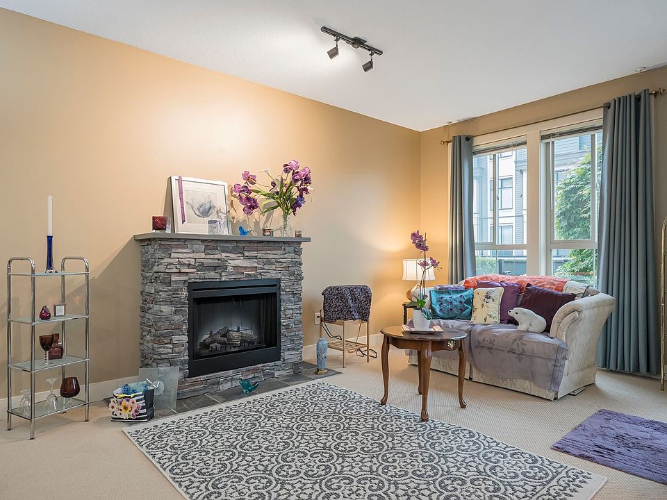 Spacious and affordable 1-bed, 1-bath condo featuring mountain views, new appliances, built-in desk, and Jack & Jill bathroom. Enjoy abundant natural light, in-suite storage, A/C, and a private patio with garden area. Wheelchair accessible and pet-friendly (1 cat and/or small dog allowed). Professionally managed strata. Steps to District 1881, shopping, and entertainment.