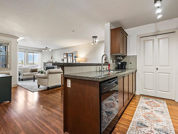 Bright & Beautiful Condo with Views! Don’t miss this great 3rd-floor unit in Birch Street Properties featuring 1 bedroom plus den (or 2nd bedroom) and1 bathroom with cheater access to bedroom, across 800+ sqft. Enjoy an open-concept layout with granite counters, high ceilings, a cozy rock feature fireplace, air conditioning, and in-suite laundry. Relax on your private balcony and take in the lovely views of the Cheam Mountain Range. All of this in a well managed, secure building within walking distance to restaurants, shops and easy access to Highway 1! No age restrictions & 1 pet allowed. Check it out!