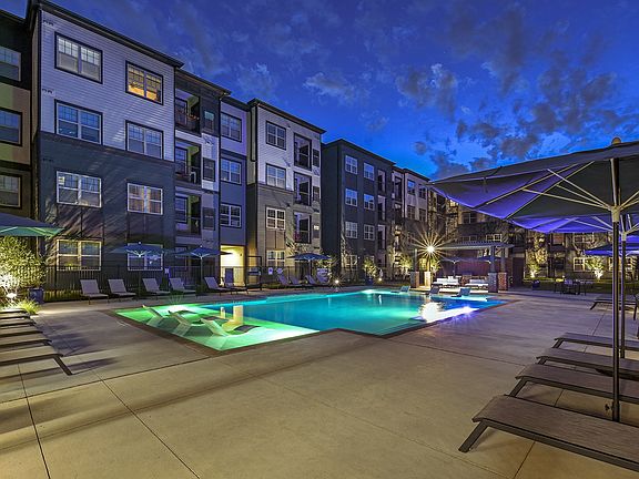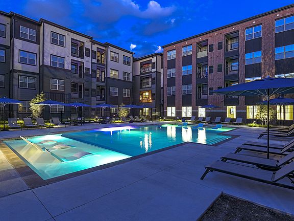 - Exterior features: Activity Room, Business Center, Electric Car Charging Stations, Fully-Equipped Kitchen and Open Floorplan, Granite Countertops, Lounge/Community Room, Modern Cabinetry and Plank Flooring, On-Site Clothes Care Center, Pet Friendly, Sky-High 9' Ceilings, Upgraded Lighting