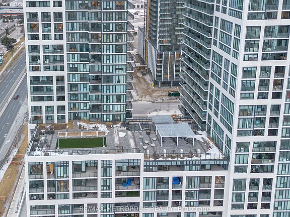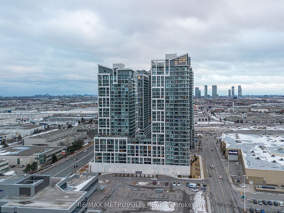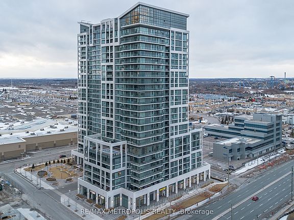 Enjoy breathtaking views from this high-floor unit! This beautiful 1-bedroom plus spacious formal den offers 635 sq. ft. of living space, plus a 115 sq. ft. balcony (totaling 750 sq. ft.). The desirable higher floor provides ample natural light and an open feel, featuring 9-ft ceilings and premium finishes throughout. The designer kitchen is equipped with a center island, quartz countertops, a stylish backsplash, and a full suite of stainless steel appliances. The grand primary bedroom boasts a large double closet for plenty of storage. Conveniently located near Vaughan Mills shopping center, TTC subway, and transit options. Experience resort-style living with luxurious 5-star amenities, including a grand lobby, outdoor pool and terrace, party room, fitness center, and more!