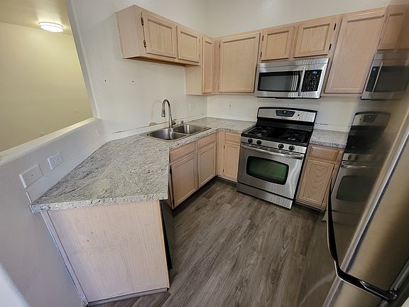 Large oversized patioStainless steel appliancesBeautiful wood like floorsCeiling fansUpgraded countertops