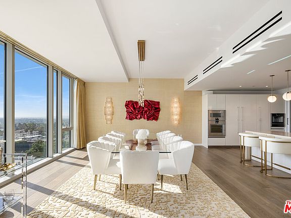Set high on the 11th floor, this rare corner residence is not the penthouse yet lives with the presence of one, wrapped in glass and capturing spectacular views in every direction. A private dual elevator opens to an arrival foyer that sets the tone for more than 5,000 square feet of contemporary interiors suspended above the city and surrounded by floor-to-ceiling glass. Expansive living areas unfold with ease, framed by large wraparound balconies that capture sweeping vistas from downtown Los Angeles to the Pacific Design Center and Hollywood Hills. Light shifts throughout the day across the double living room, family space, and formal dining area, each flowing effortlessly into one another while maintaining a sense of scale and distinction. The kitchen is crafted as both a workspace and a retreat, with a large laundry, full bath, and flexible bonus room discreetly concealed behind. A richly composed powder room adds refinement, while ample storage is seamlessly integrated throughout. The primary suite is a sanctuary in its own right, commanding cinematic views that stretch across the city. Dual baths are individually appointed, including a soaking tub positioned before the skyline, accompanied by walk-in closets and a dedicated vanity area. Two additional guest suites, each with marble-clad baths and walk-in closets, also feature magical views both day and night. Life within this Four Seasons residence is matched by the service and environment beyond. With interiors by Martyn Lawrence Bullard, just fifty-nine homes share access to resort-style amenities: a pool framed by cabanas, a private restaurant with twenty-four-hour in-room dining, concierge and valet, and a dedicated property management team whose reach extends from safeguarding the residence while away to orchestrating a stocked kitchen or private jet on return. Set at the nexus of West Hollywood and Beverly Hills, moments from celebrated dining, shopping, and nightlife, it is a home that carries the rare equilibrium of architectural presence, five-star service, and absolute discretion.