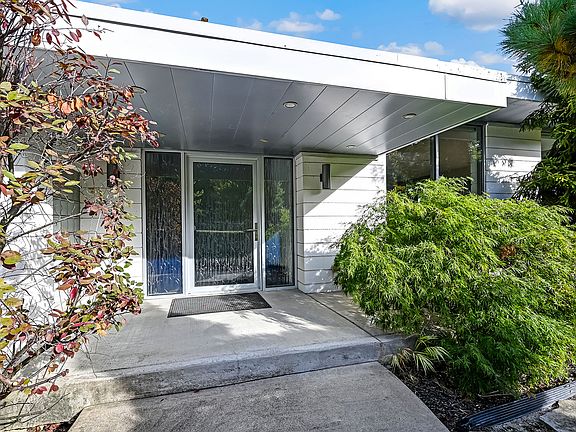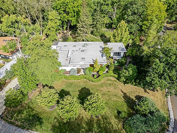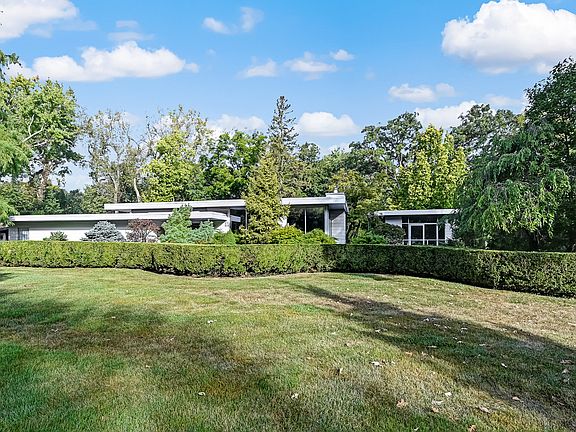 Discover the timeless elegance of this Mid-Century Modern ranch, gracefully situated on nearly three-quarters of an acre. The property boasts natural landscaping and gardens that are beautifully framed by floor-to-ceiling glass windows. The 3,050 SF open floor plan features a spacious living, dining, and kitchen area, creating an inviting space for entertaining or simply enjoying the tranquil surroundings. The kitchen is a delight, featuring generous space with an oversized island, granite and stainless steel countertops, and stainless steel appliances. Natural light floods the home through multiple skylights, complemented by in-ceiling speakers and a Cat 5 system for modern connectivity. A glass-enclosed walkway provides breathtaking panoramic views of the gardens and backyard, guiding you to the sunroom/den. This serene retreat offers direct access to both decks, patio, and the surrounding outdoor space. The primary suite is a luxurious escape, offering a vast wall of closet space and an ensuite bathroom complete with dual Kohler sinks, Grohe faucets, and a granite slab shower surround. The second bedroom is generously sized and includes a separate office area. Car enthusiasts will appreciate the remarkable 4+ car attached garage featuring epoxy flooring, built-in cabinets, a sink, an EV charging station, and additional storage. A stand-by generator ensures peace of mind. Situated in a prime location, this home is conveniently close to the library, Village center, tennis courts, playground, and Village Green, with easy access to the Metra station. Outdoor enthusiasts will love the proximity to top hiking and biking trails. Whether you're a nature lover, a connoisseur of showroom-level garages, or someone who values privacy and serenity, this estate sale promises an unparalleled lifestyle. Conveyed as is.