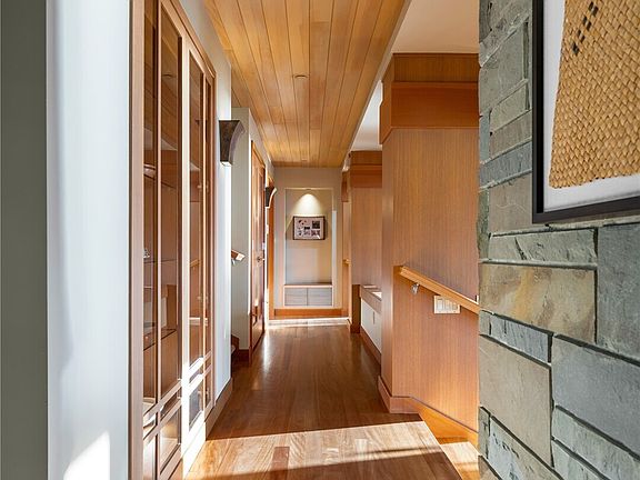 Perfectly balanced. Perfectly serene. Tucked away at the very end of a quiet lane, this 2003 AIA architect-designed home exemplifies Pacific NW waterfront living at its finest. Walls of west-facing windows frame sweeping lake views. Hardwood floors glow beneath paneled hemlock ceilings. Primary view suite includes study with fireplace. Living areas open seamlessly to a trellised terrace which steps down to an expansive gently sloping lawn. 100 plus feet of private, low-bank shoreline with easy to access, pebbled beach. Oversized shared dock with boat lifts complete the experience.Thoughtful design, enduring quality + understated elegance, this residence embodies quiet luxury.A blissfully private sanctuary in harmony with its verdant setting