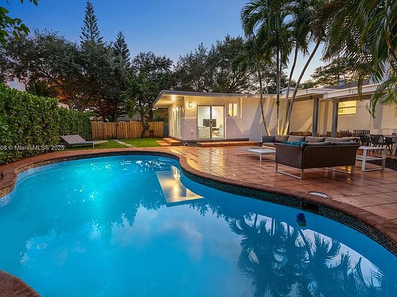 Large contemporary home in the village of El Portal. Magnificent two story home offers 6 bedrooms & three bathrooms with over 3,200 sf of living space on a double corner lot with over 14,000 sf. The property offers a great layout with the main bedroom and bathroom on a separate wing on the second floor. Five bedrooms and two bathrooms on the ground floor. An updated kitchen with an open concept to the large dining room and family room that leads into the immense backyard with a beach volleyball court. The pool is surrounded by lush vegetation. Enjoy the dining area to eat al fresco by the pool. Large two car garage, all impact doors & windows. Ideal house for a large family and entertaining. The property is located right on the division between Miami Shores and El Portal.