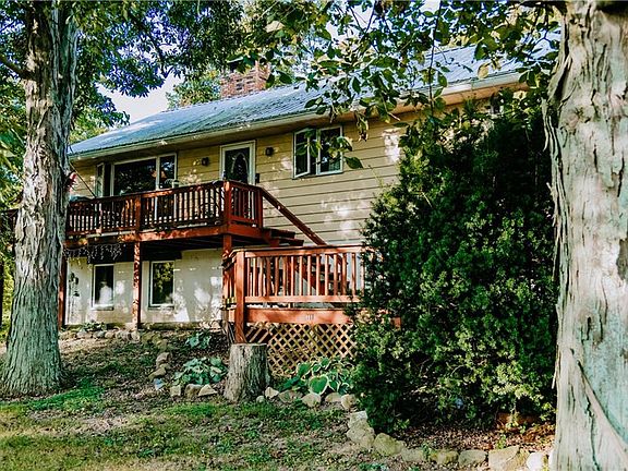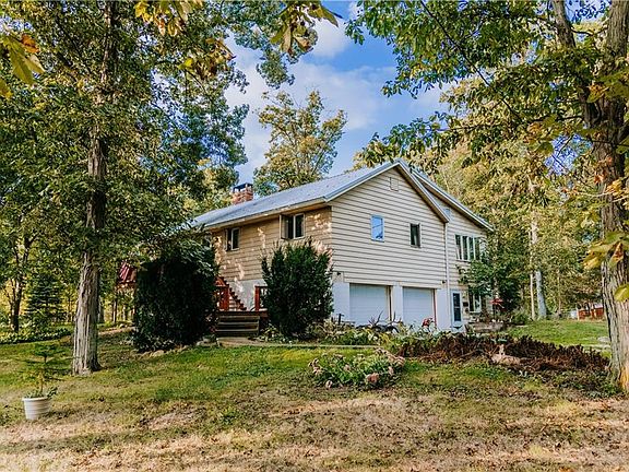An amazing horse property that features a 40' x 73' barn with 8-9 stalls plus tack room. This 83+ acre farm has opened, wooded and tillable land that has a stocked pond and many outbuildings including a large 40' x 70' barn/workshop with extra tall garage doors and corn crib, a pig pen and 3 coups with fully enclosed fencing that were used to raise peacocks and chickens. The home is a raised ranch with 4-5 bedrooms, 3 full bathrooms, a large living room plus a family room and unique spiral staircase that takes you from the mudroom up into the family room. There is also an "In-Law" suite in the lower level that includes a family room/game room, 1-2 bedrooms, full bathroom and its very own kitchen. This home has had one owner and is a must see!