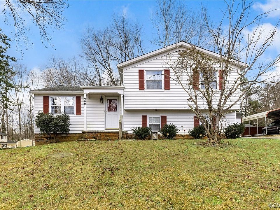 Hi cutie! Don't miss this one over here looking like a snack! Before you fall in love with this turnkey home, fall in love with the location. So close to all the shopping and convenience of Midlothian turnpike and a short trip to Rt 288 for convenient commuting! The ground level of this well maintained home features a good sized flexible space that can be used as an office, learning space or playroom; a den for kicking back and watching TV; and a laundromat utility room for the active modern family. A convenient feature of the office/den is the walkout/walk-up exit door for efficient access to and from the paved driveway. A staple of tri level homes, short flight of stairs, lead to the next level which feature the eat-in kitchen with large peninsula and double entry that leads to a breakfast nook, dining space and living room with loads of natural light. Enjoy your family togetherness in the open floor plan living room and when you want some outside time travel through the dining area to the walkout deck overlooking the back yard. Travel up a few more steps to a level offering dedicated privacy for your 3 nice-sized bedrooms. 2 bedrooms with full-size closets, carpet and ceiling lights. A full bathroom with tub. The primary bedroom has good closet space and an en suite bathroom for the owner's suite. This is exactly the kind of home and neighborhood families have been starting, creating memories and loving for years. I hope you will continue the tradition. Welcome Home.