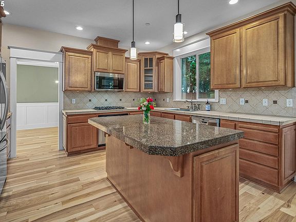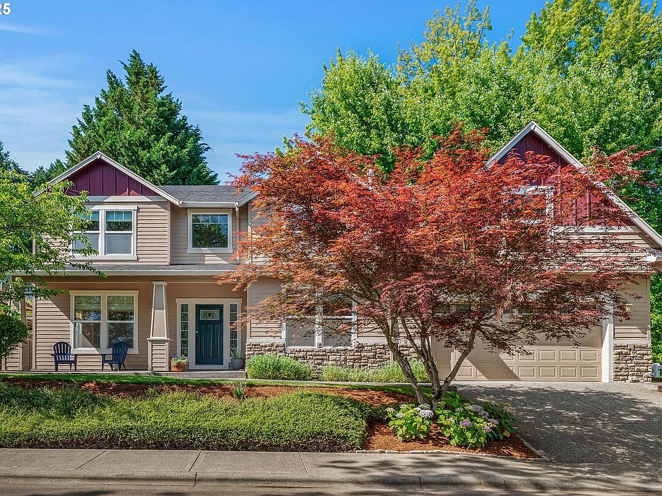 Welcome to your dream home in the highly desirable Raleigh Hills neighborhood. This stunning 5-bedroom, 2.1-bathroom residence boasts 3,000 square feet of elegant living space. The heart of the home is a spacious gourmet kitchen featuring an oversized island, pantry, sleek stainless steel appliances, and custom cabinetry that flows seamlessly into the inviting great room, complete with a cozy gas fireplace and built-ins. Experience formal entertaining in the beautiful dining space or unwind in the formal front room living space. The main floor office adorned with wainscoting and French doors is the perfect space for a work at home aptmosphere. The luxurious primary suite features vaulted ceilings, a sumptuous en-suite bath with a walk-in shower, jetted tub, and a cedar-lined walk-in closet. Three additional good-sized bedrooms and a flexible 5th bedroom/bonus room make this home ideal for all lifestyles. Enjoy low-maintenance outdoor living with a private fenced yard and raised garden bed. Added conveniences include a 3-car tandem garage, all appliances included, central air, newer engineered hardwood floors, modern lighting, surround sound, and an EV charger. Move-in ready and situated near shops, restaurants, parks, and top-rated schools—this home has it all!