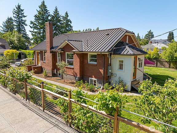 Fabulous corner lot in Maple Leaf, 90th & 12th are stunning. SW sunshine, 8250 sq ft fenced, level yd. Original character w/built-ins & coved ceilings + enclosed front & back porches too. Prepped to sell w/fresh paint, gleaming hardwood floors, new carpets, brand new heat pump for summer air conditioning. Gas heat. Updated kit w/quartz counters, updated bths, 2 lg br main level, 2 down + den/office down & a rec room. Lots of windows, a nice bright home. Long term metal roof looks fantastic on this 1930 brick home. 2-off street pkg spaces, mature grape vines for your wine making hobby, an olive tree + raised garden beds. Walk to excellent Maple Leaf Reservoir Park w/16 acres with cool views of downtown, Mt Rainier & more. Storage shed stays.