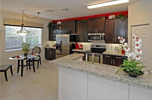 Brand-new 4/2.5/1 beautifully-decorated, fully-furnished inaguas model home. Loaded with upgrades: double granite counters, stainless steel appli, 42" wood cabs, crown moulding, glass doors, u/m s/s sink, wine rack, wine cooler. Upgraded tile flrs; recessed lights, lam. Wood stairs/hallway. Master ste: upgraded carpet, recessed lights. Master bath: upgraded flr & shower tile, roman tub w/sep shower, flat screen tv, marble counters, upgraded fixtures. W/d. Landscaped. Hurricane impact windows & doors.