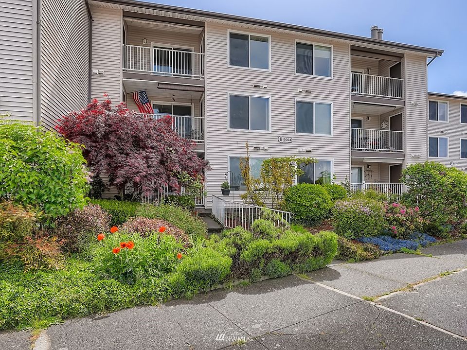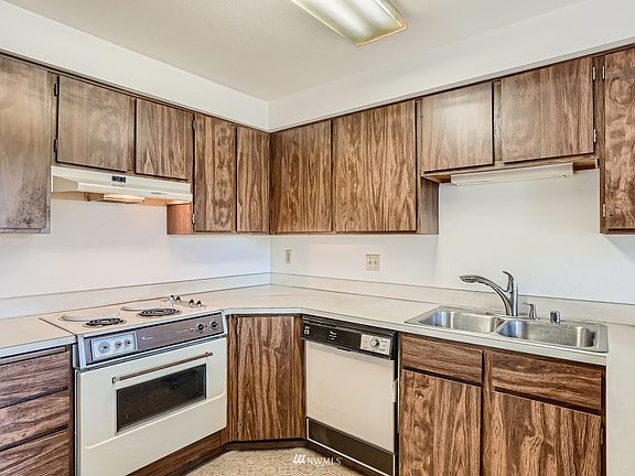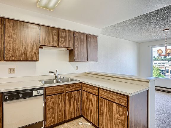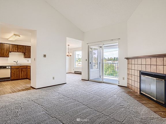 Super convenient 2 bedroom condo across the street from Westwood Village; which includes Target, QFC, restaurants and other retail. This spacious top floor unit features vaulted ceilings, wood burning fireplace, deck and laundry in the unit. Freshly painted throughout and new carpet. Ample storage, deck and 1 assigned carport parking spot; conveniently located near the unit. Easy bus access. Don't miss this opportunity!