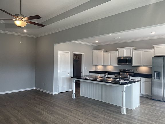 Plan(1624 Elevation DEF) All photos are file photos of the 1624 plan due to construction. Single level three bedroom home with covered rear porch. Large great room open to kitchen with a large dining area and island.