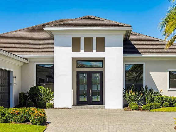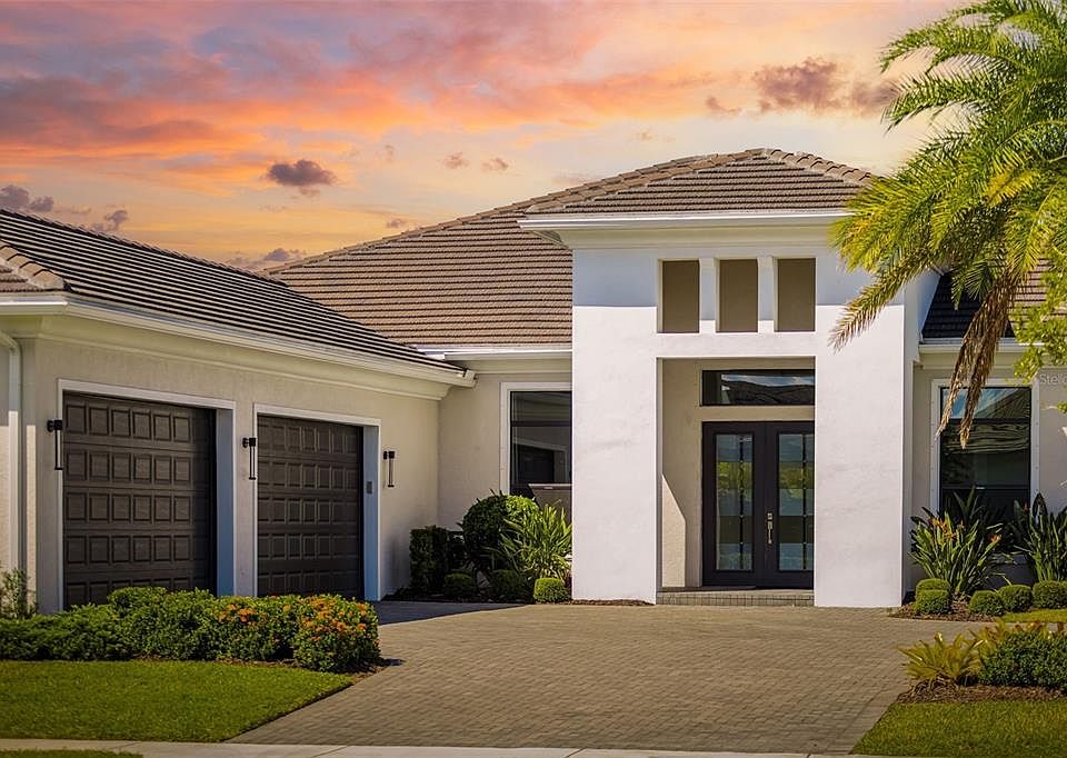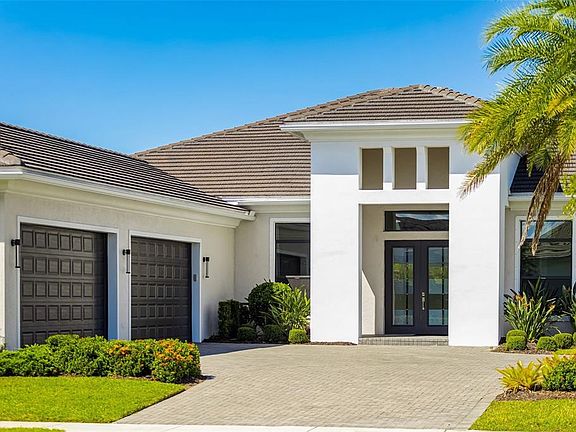 One or more photo(s) has been virtually staged. Experience the pinnacle of coastal luxury living in this better-than-new residence nestled within the exclusive gated community of Artistry Sarasota—with no CDD fees and truly maintenance-free living, where all landscaping and irrigation are included! Situated on one of the largest lots and featuring one of the most optimal floor plans in the community, this home offers generous, light-filled living spaces and some of the most coveted views in Artistry. Inside, discover impeccable craftsmanship, soaring 12’ ceilings, luxury vinyl plank flooring, and designer finishes throughout. The gourmet kitchen showcases upgraded GE Profile appliances, custom cabinetry, and a large island perfect for entertaining. Each secondary bedroom features a private en-suite bath and walk-in closet, while the expansive “Club Room” (a builder upgrade) offers flexibility for a theatre, game room, or private retreat. The 4-bay air-conditioned garage provides exceptional comfort and protection with concrete block construction, a concrete tile roof, and energy-efficient spray foam insulation. The luxurious owner’s suite includes a spa-inspired bath and spacious walk-in closets. Step outside to your private screened lanai overlooking tranquil water views—already plumbed for an outdoor kitchen. Community features and amenities include two gated entrances, a resort-style pool, clubhouse, tennis and pickleball courts, playground, and fitness center, all surrounded by beautifully landscaped walking paths. Artistry Sarasota is a maintenance-free, upscale community with no CDD fees, offering easy access to everything that makes Sarasota and Lakewood Ranch so desirable—world-class beaches, dining, shopping, entertainment, and top-rated schools. There is an art to living well, and you’ll find it here in Artistry—every day! Welcome to your piece of paradise.