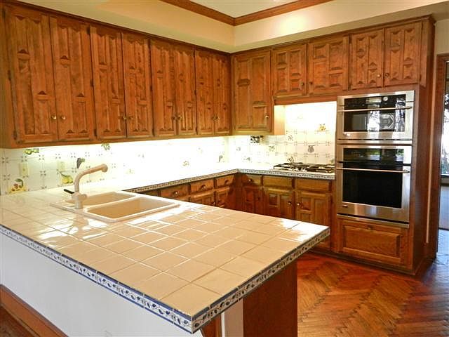 Beautiful custom built 1 owner home. Special side street access off Church Rd. Prof designed landscaping, stone retaining wall, oak trees.12' ceiling in frml LR, French country kitch, hand painted tiles, GE Monogram SS appliances, gas cooktop w downdraft. Gorgeous handscraped herringbone wood floors, kitch thru to entry. 4th BR split w bath. Wood shake metal roof, column stone & wrought iron fence. Plantation shutters, sec, sprinkler, zoned AC!