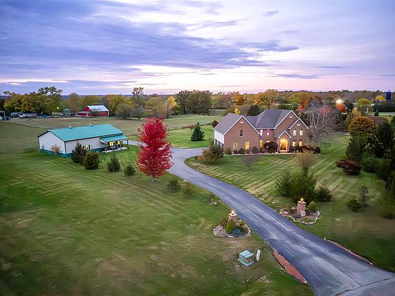 Welcome to this exceptional property located in the desirable Hidden Hills Subdivision of Centerville, IN. Nestled on just over 2 beautifully landscaped acres with mature trees, this spacious home boasts over 4,000 sq ft of living space, not including the expansive walk-out basement. This finished basement offers two spaces for entertaining and relaxing, a lovely gas fireplace, half bath, plus an extra room for a home office, fitness room, 6th bedroom, etc. This brick and vinyl home can easily accommodate 6 bedrooms, offering flexibility and room to grow. Three of the 4 bathrooms have been renovated to include modern light fixtures, unique tile work, and vessel sinks. This home offers a light-filled layout with gorgeous lighting fixtures, 6-panel solid wood interior doors, hardwood flooring, finished basement, crown molding, and lots of detail to design. The kitchen is a showstopper with granite countertops, custom cabinetry, built-in shelving, plus a stunning view of the peaceful back acreage. As you enter the walk-out patio, you will find a new chain-link fence and stairway for easy access. The attached 3 car garage is complemented by the massive 46'x 50' heated pole barn, complete with a clubhouse/recreation area, full bath, and a workshop space. Ideal for hobbies, entertainment, or a private retreat. Refer to the amenities sheet for more detailed information or better yet, let's make an appointment to go see it for yourself! Call Rhonda or Marc Duning, 765-967-7466.