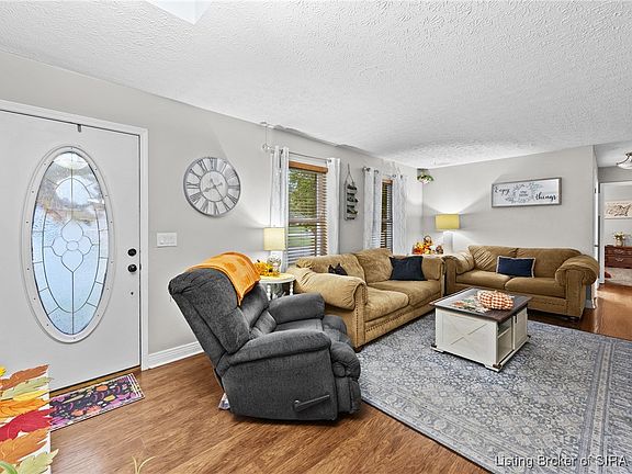 Welcome to this charming ranch-style home on a walkout basement, situated on over a quarter acre in Sellersburg. The main level features a spacious living room, a bright kitchen with stainless steel appliances, and three comfortable bedrooms along with a full bath boasting a double vanity. The finished basement offers even more living space with a large bonus room highlighted by a cozy gas fireplace, a fourth bedroom, a full bath with a stand-up shower, an office area, and plenty of storage. Enjoy outdoor living with a deck off the kitchen, a covered patio below, and an above-ground pool—perfect for relaxing or entertaining. This home offers a wonderful combination of comfort, functionality, and space both inside and out.
