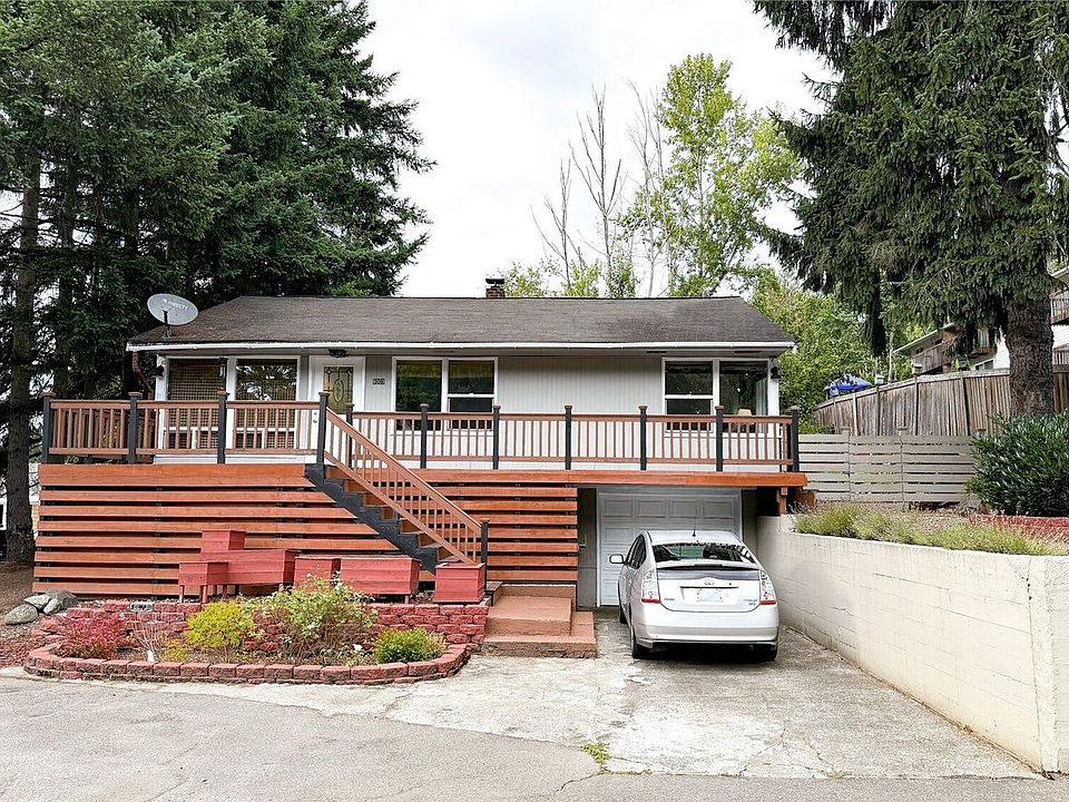 Newly remodeled 5 bedroom, 2 bathroom house with mature fruit trees in backyard, vegetable garden area. Huge backyard deck, front deck, 1 car garage and plenty of off street parking. High Ceiling in most of the house, 9 ft.