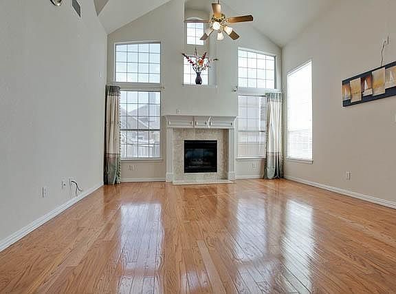Fantastic 4 bedroom home with artistic high ceilings. Beautiful view of the community park in the front. Upgrades galore, hardwood floor through whole house included 4 bedrooms and their closets. Master bedroom down with full bath and jet. Great view of the house from one upstairs room open window. The front yard is maintained by HOA and Owner will pay the fees. Walking distance to park, school, recreation center, tennis courts, and water park! Easy access to 635-Bush-114-MacArthur. Short distance to Valley Ranch Library and Cimarron Park Recreation Center and Pool. Pets to be case by case. 4 bedroom home with artistic and high ceilings. Energy star AC, solar screen, move-in ready.