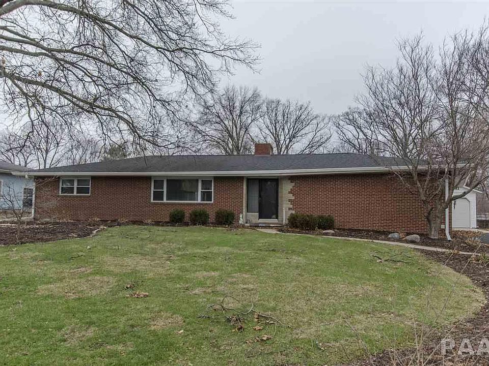 BANG FOR YOUR BUCK! Sprawling 2-3BR/2BA brick stepsaver ranch on over half acre level wooded lot backing up to ravine. Major updates include boiler heat & central air '04, house shingles '04, 200 amp electrical panel '03, brick patio '03, remodeled bathrm '10, septic field bed '11 & oversized gutters '13. Huge family room previously used as MBR. Fully applianced kitchen open to formal dining plus fireplaced hearth room/informal dining. Generous closets! Gorgeous bathrm with dual sinks, shower & whirpool tub. 3 season sunrm. 40' deep garage with 30x30 bball court behind. Home warranty included!